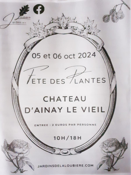Exposition - Fête des plantes dans le château d'Ainay le vieil (18) représentée par l'association "Les jardins de la Loubière" le 05 et 06 Octobre 2024.